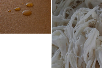 由桑樹皮、棉織物和水性塗層製成的 100% 植物皮革,具優異耐用性且無毒性的材料